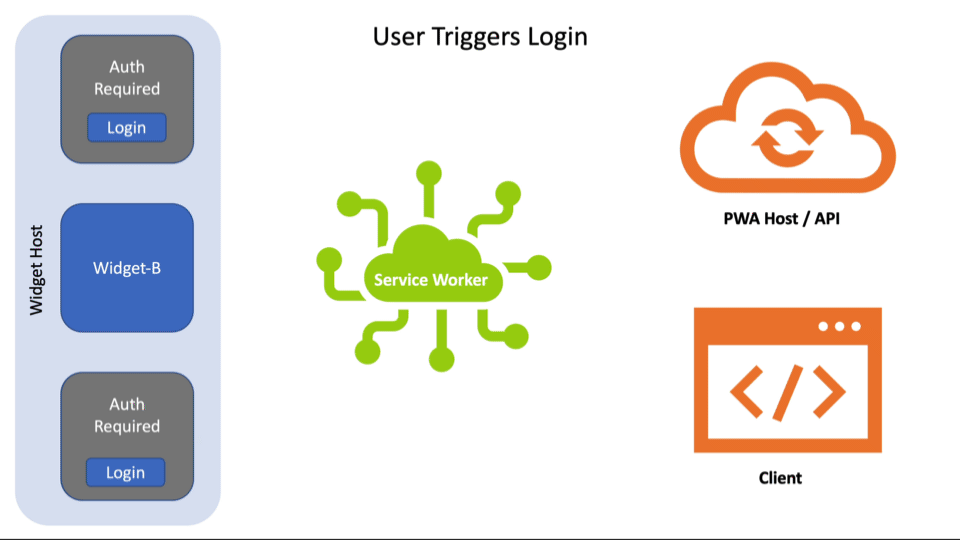 WidgetEvent named "login".Client (or in a new Client if one is not open).postMessage() to the Service Worker letting it know the user is authenticated again.widgets.updateByInstanceId() (or widgets.updateByTag()).You can see more examples in the WidgetEvent section.