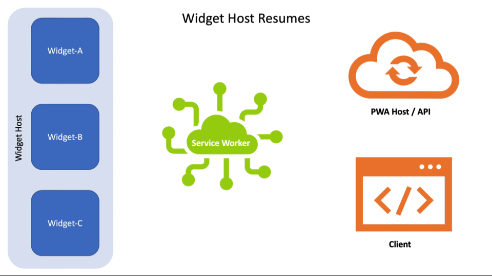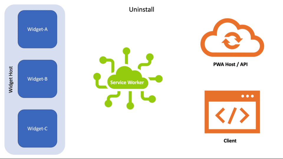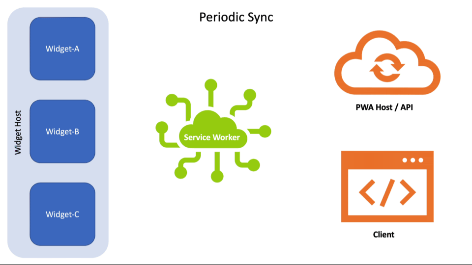 Request to the host or some other endpoint.Response comes back.WidgetDefinition provided during install, the Service Worker can identify which widgets need updating. (This is internal logic and not shown in the video).widgets.updateByInstanceId() (or widgets.updateByTag()) to update the specific widgets that make use of that data.To show a more complicated example, consider what should happen if certain Widgets depend on authentication and the user happens to log out in the PWA or a browser tab. The developers would need to track this and ensure the Service Worker is notified so it can replace any auth-requiring Widgets with a prompt back into the app to log in.
