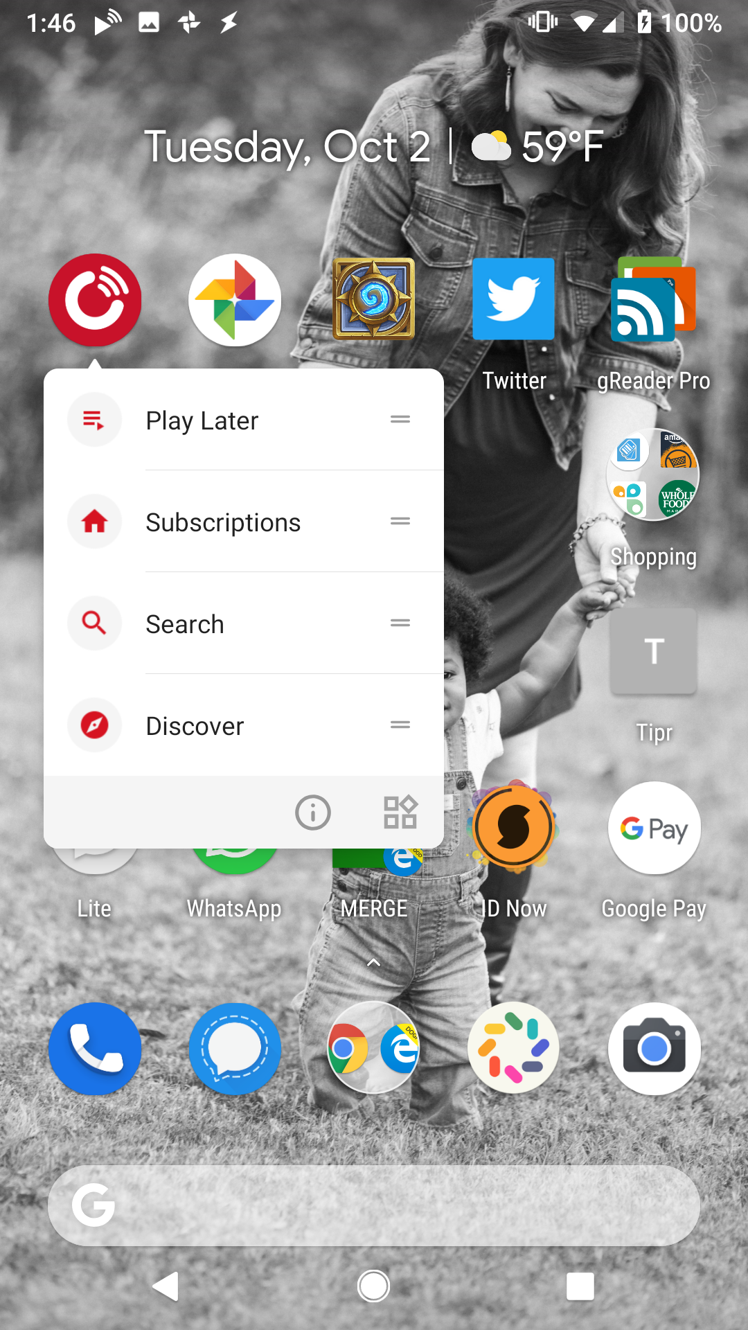 In Android, shortcut activation is triggered via a long press. Android allows the static shortcut list to be supplemented at runtime via Dynamic Shortcuts and allows users to rearrange and "pin" shortcut items. (Documentation)