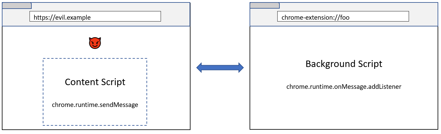 While Content scripts runs in an isolated world, it still runs inside a renderer process. And because many extensions inject a Content script to all websites (e.g. Password manager extensions, Ad blocking extensions, etc), a compromised renderer can send messages to a Background script using above communication channels.